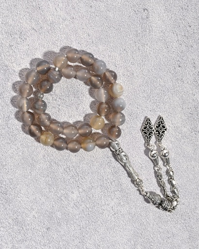 سبحة حجر عقيق طبيعي رمادي ROS8003GY