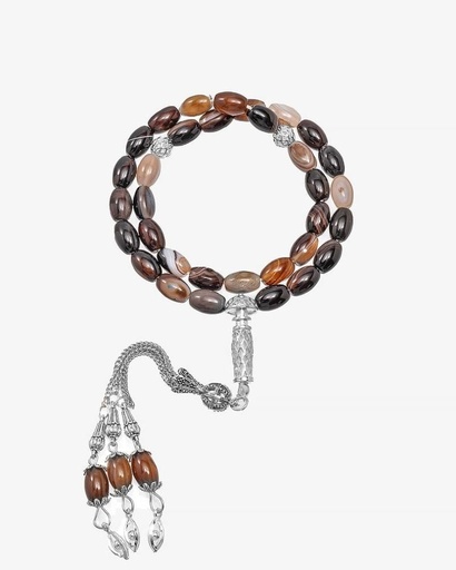 سبحة حجر عقيق طبيعي بعروق فاخرة