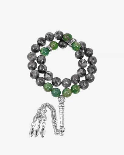 سبحة حجر لابرادوريت وزبرجد طبيعي