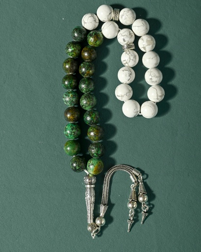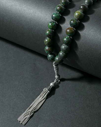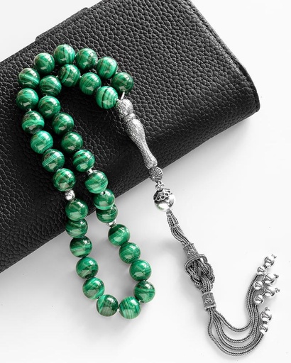 سبحة فضة بحجر ملاكيت طبيعي انيقة