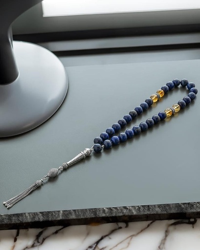 سبحة فضة حجر لازورد وسترين طبيعي