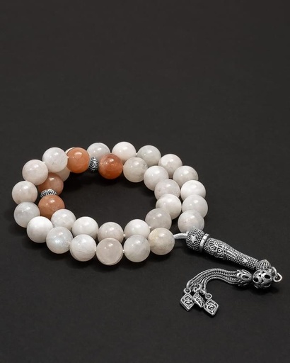 سبحة حجر جاد ابيض وروز
