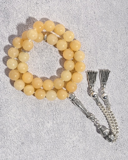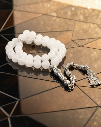 سبحة حجر جاد ابيض طبيعي