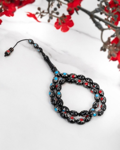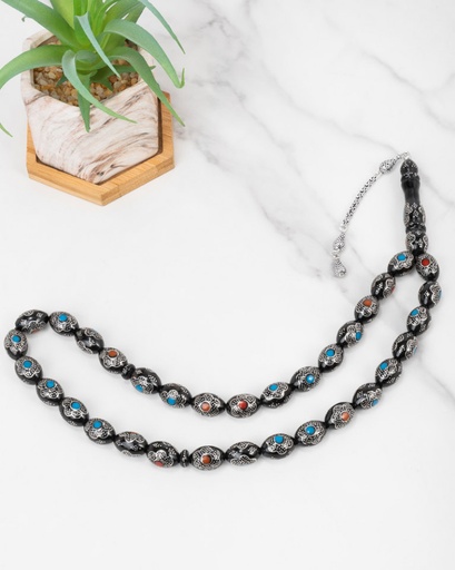 سبحة كوك فيروز ومرجان مطعم بالفضة