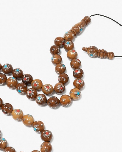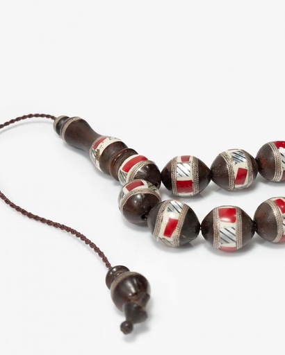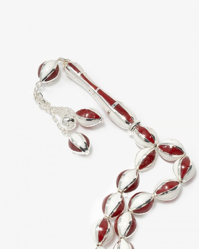 سبحة كوك مزخرفة بفضة ومرجان احمر