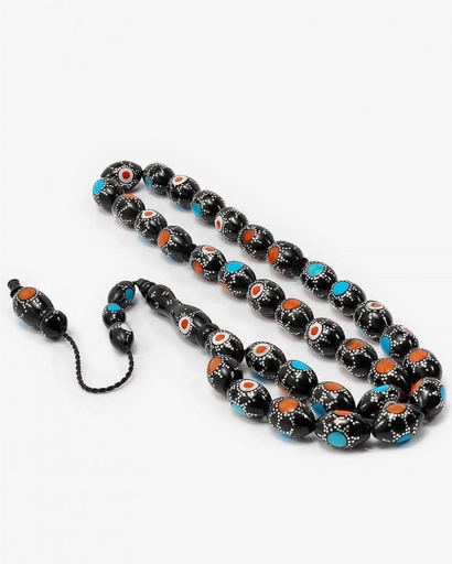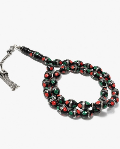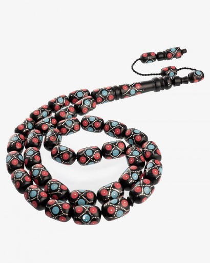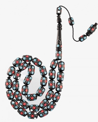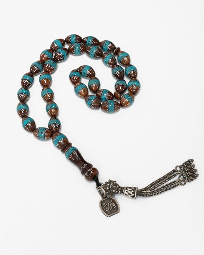سبحة كوك بنقش الفضة مرجان وفيروز