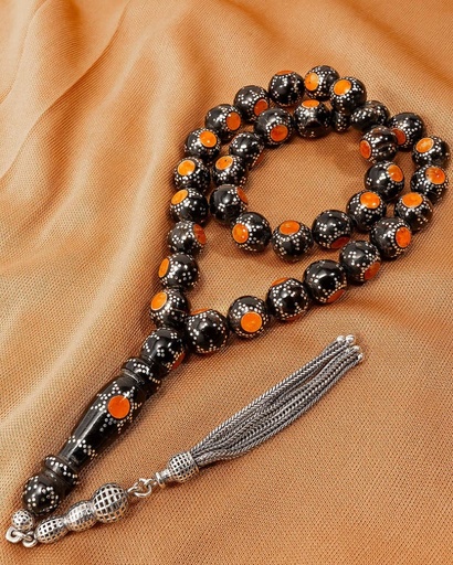 سبحة كوك بنقش الفضة شبية الكهرمان
