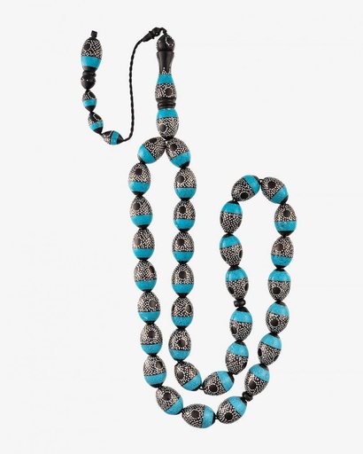 سبحة كوك فضة منقوش بحجر فيروز