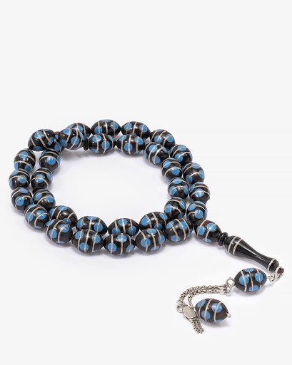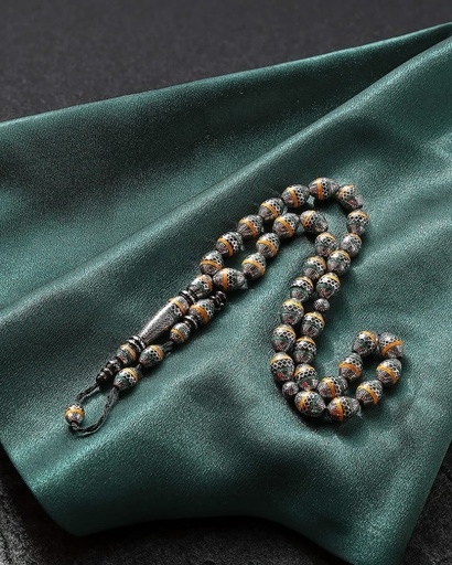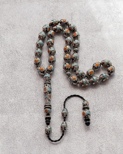 سبحة يسر مرصع بفضة تراب الكهرمان وفيروز طبيعي