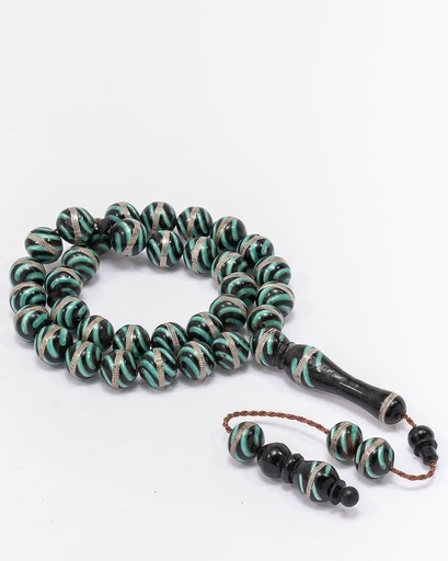 سبحة يسر بفضة مزين ملاكيت وتراب كهرمان طبيعي