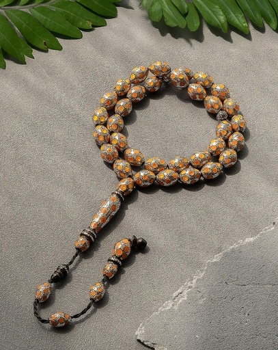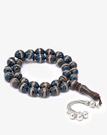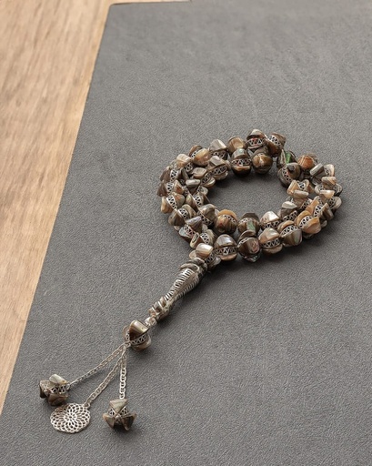 سبحة خشب كوك طبيعي مزين بالفضة الخالصة