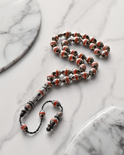 سبحة يسر مزين بالفضة ومرجان احمر طبيعي