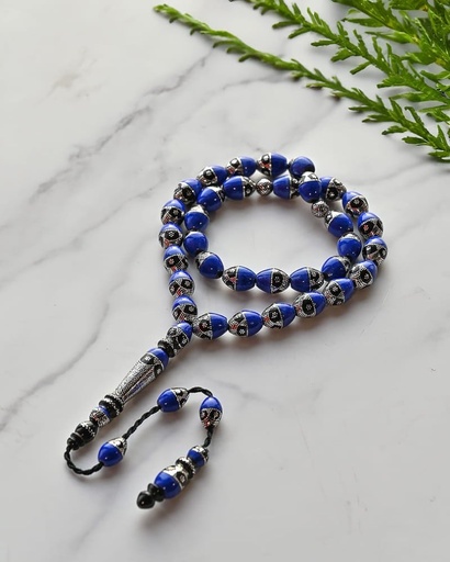 سبحة يسر مزين بالفضة ولازورد طبيعي