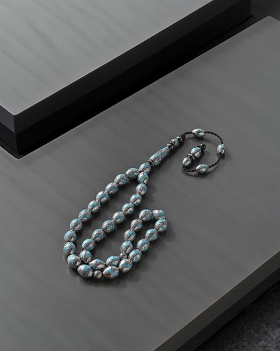 سبحة يسر مرصع بالفضة وفيروز طبيعي