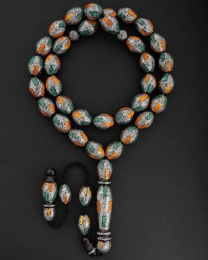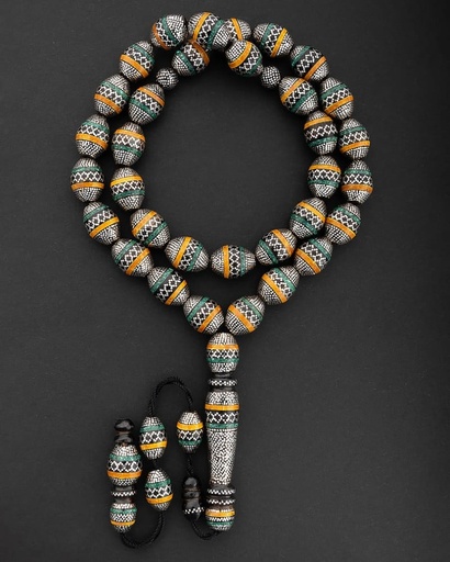 سبحة نادرة يسر طبيعي مزخرفة بفضة خالصة