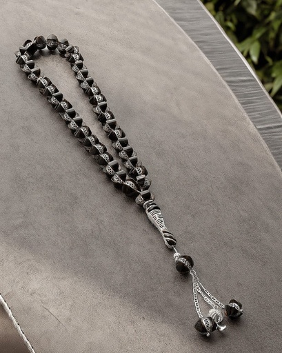 سبحة خشب كوك منقوش بالفضة عيار 925