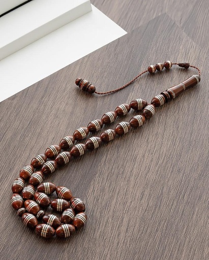 سبحة كوك طبيعي مزين بالفضة وعاج
