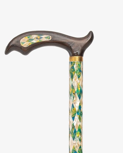 عصا عكاز ايبانوس مزين شبيه لازورد وصدف طبيعي