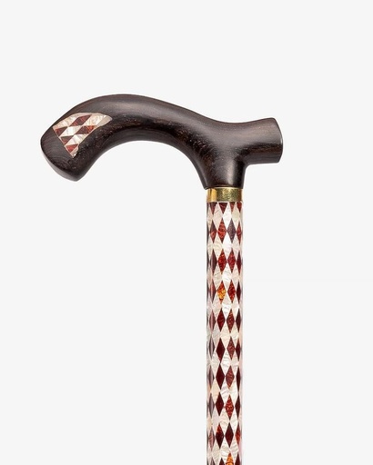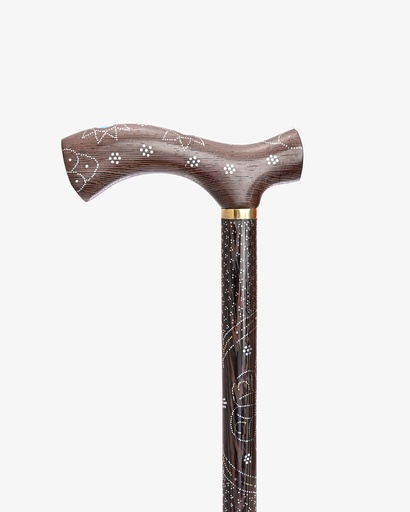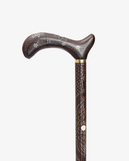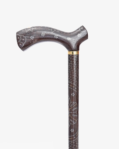 عصا عكاز خشب الابانوس منقوش بصدف صناعي فاخر