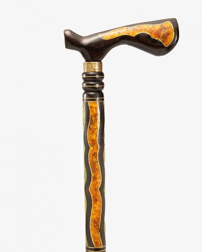 عصا عكاز مزين بالنحاس وشبيه الكهرمان
