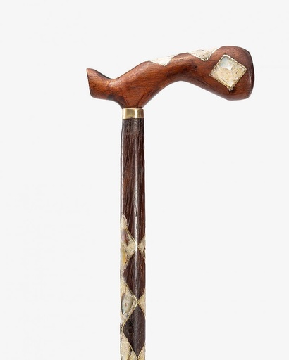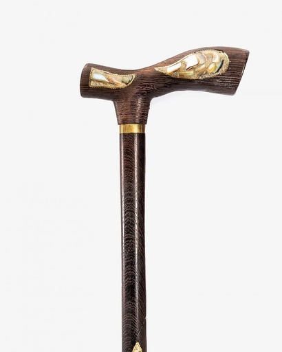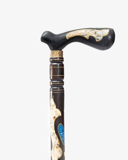 عصا عكاز بخشب الابانوس مطعم بالصدف