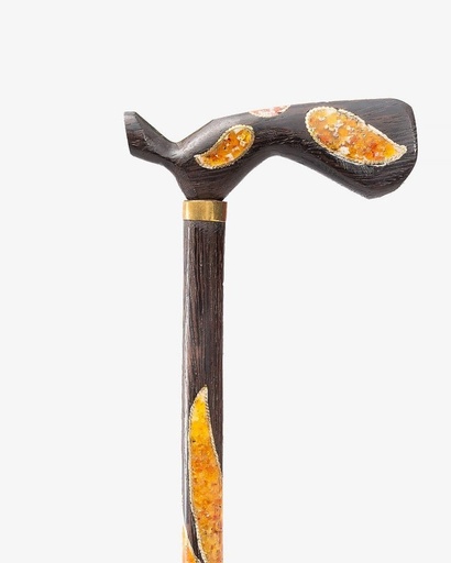 عصا عكاز خشبي شبيه الكهرمان والمرجان