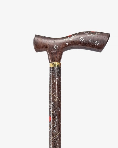 عصا عكاز خشب فينجي مرصع بمرجان احمر