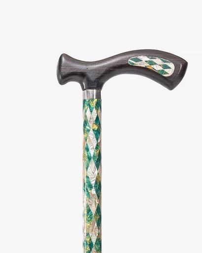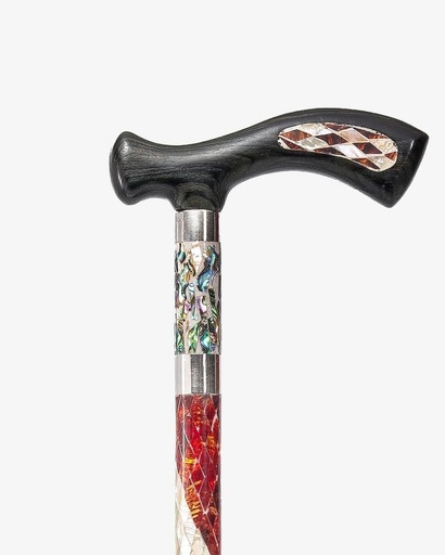 عصا عكاز ايبانوس منقوش بصدف ملون