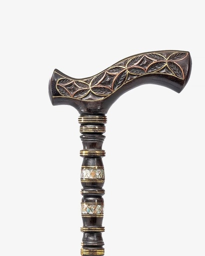 عصا عكاز ايبانوس طبيعي منقوش بصدف
