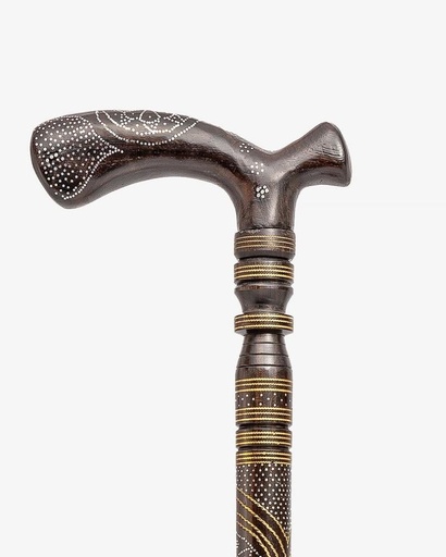 عصا عكاز ايبانوس طبيعي بنقش يدوي فاخر