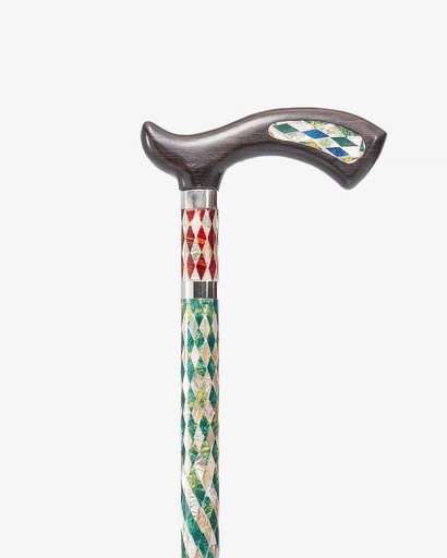 عصا عكاز خشب ايبانوس بصدف صناعي ملون