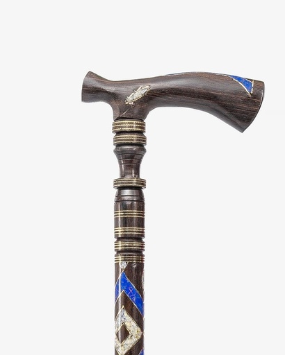 عصا عكاز ايبانوس مزخرف شبيه لازورد وصدف طبيعي