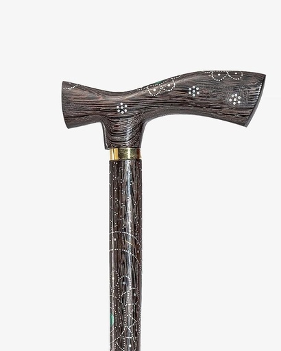 عصا عكاز ايبانوس مزخرف صدف طبيعي
