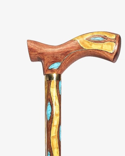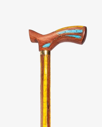عصا عكاز خشب تايجر مزخرف شبيه الكهرمان والفيروز
