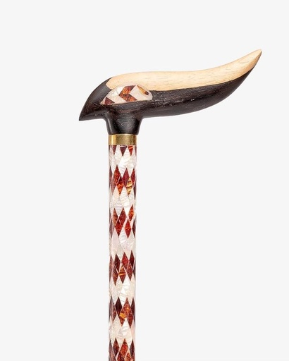 عصا عكاز خشب ايبانوس مرصع بصدف صناعي فاخر