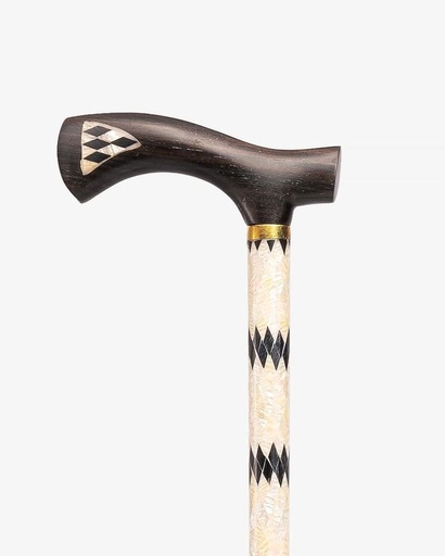 عصا عكاز خشب ايبانوس بصدف صناعي