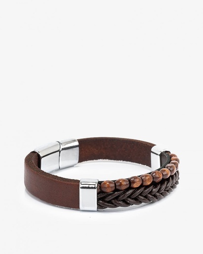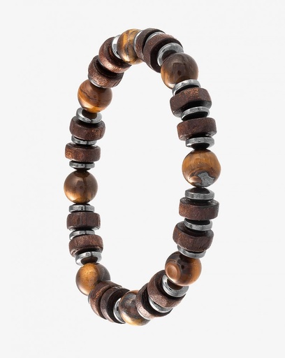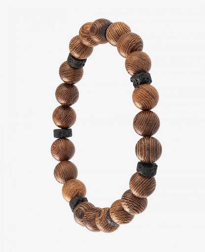 سوار خشب طبيعي وخرز اسود تيتانيوم