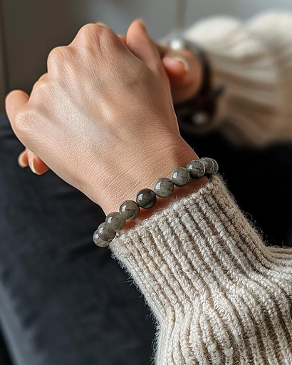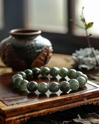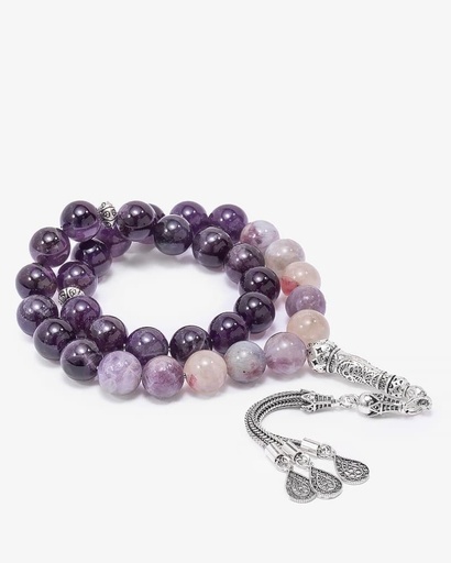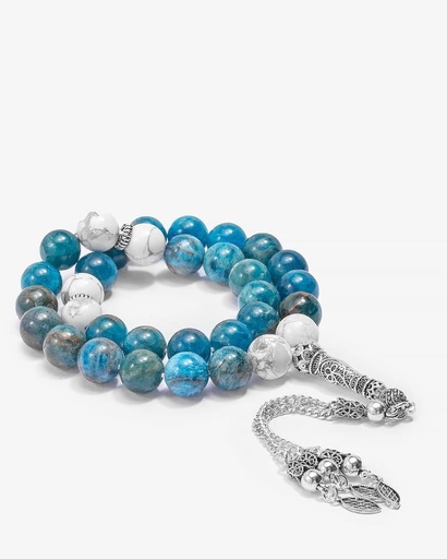 سبحة فضة باحجار طبيعية ابتايت وهولايت انيق