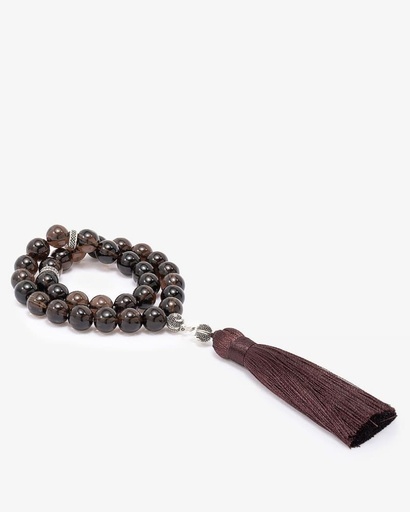 سبحة فاخرة بحجر كوارتز دخاني شفاف