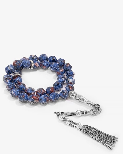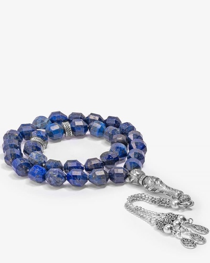 سبحة فضة حجر لازورد طبيعي فاخر
