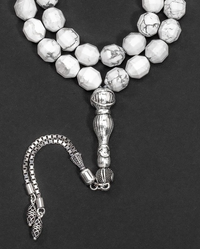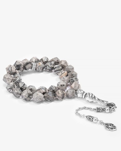 سبحة فضة حجر جاموس طبيعي ( هولايت )