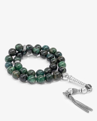 سبحة فضة حجر زبرجد اخضر طبيعي