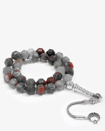 سبحة فضة حجر الدم الافريقي