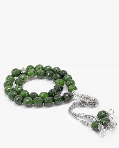 سبحة فضة حجر يشب طبيعي بقصة الاماس