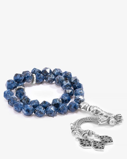 سبحة فضة حجر عقيق ازرق بقصة الاماس