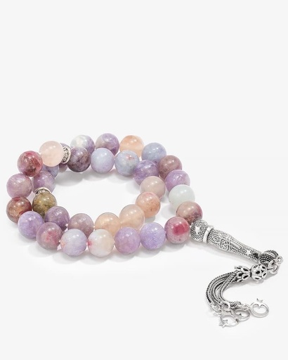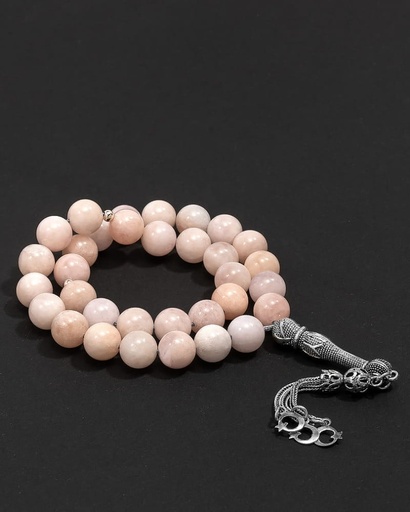 سبحة فضة حجر روز كوارتز انيقة