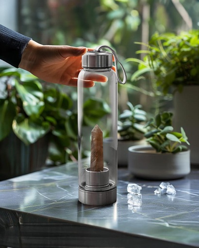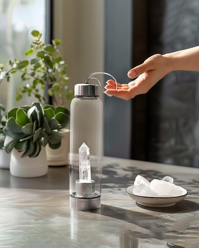 زجاجة ماء حجر كلير كوارتز طبيعي