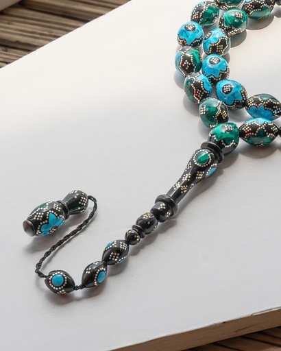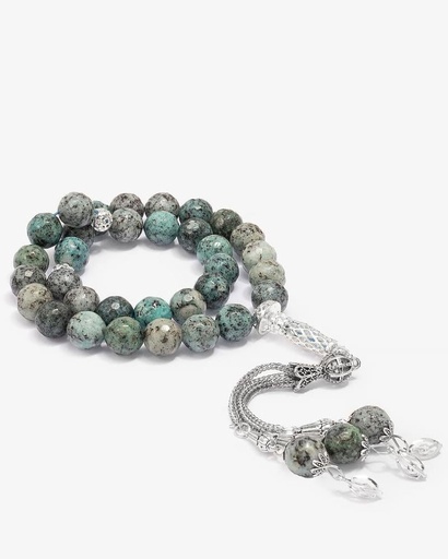 سبحة يسر بفضة مزين فيروز وملاكيت طبيعي