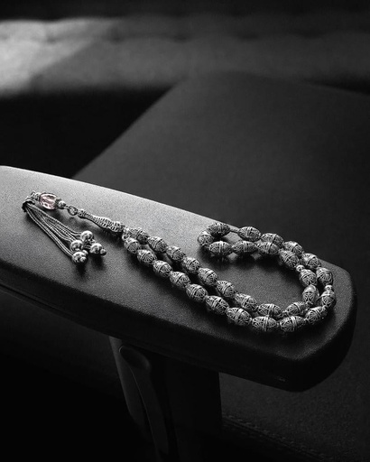 سبحة منقوشة من الفضة الخالصة عيار 925