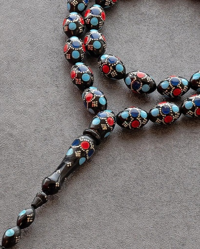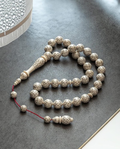 سبحة نادرة من العاج (ناب الفيل) مرصع بفضة